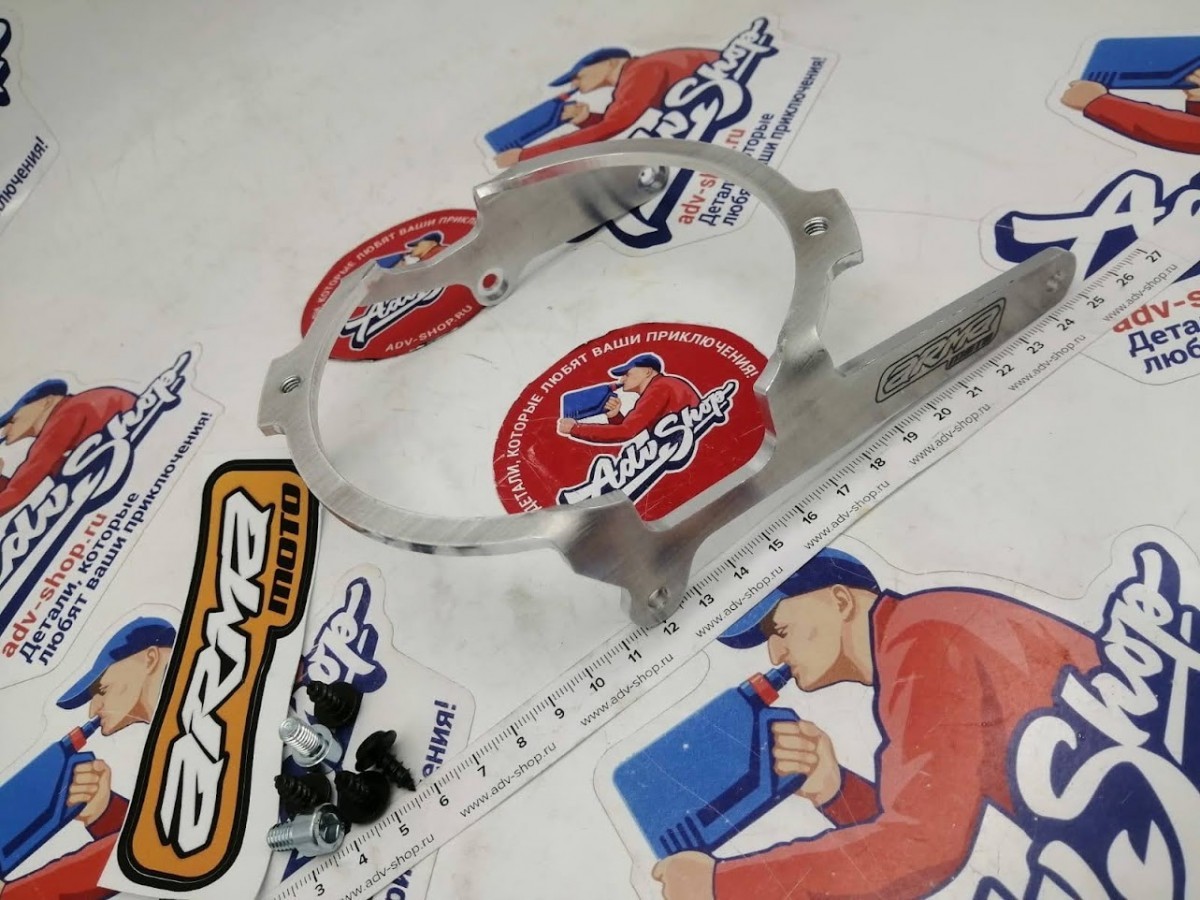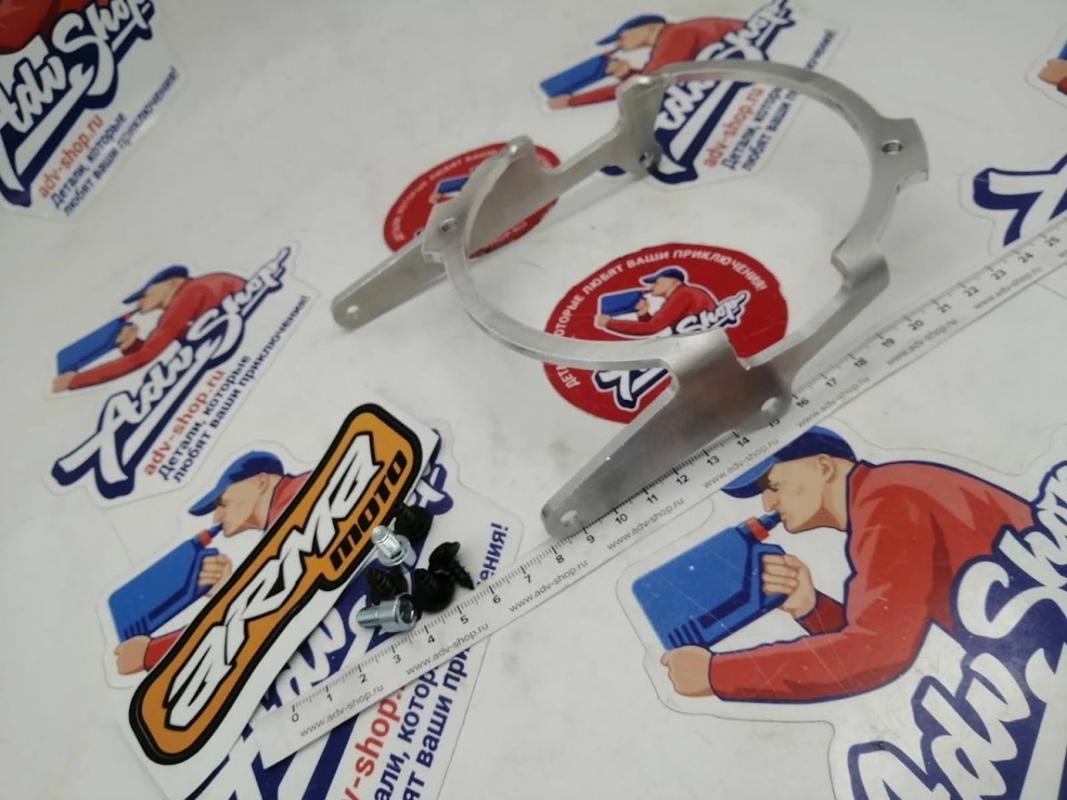 Кронштейн для установки вентилятора охлаждения на радиатор мотоцикла. Изготовлен из алюминия толщиной 4 мм, поставляется в комплекте с крепежом.