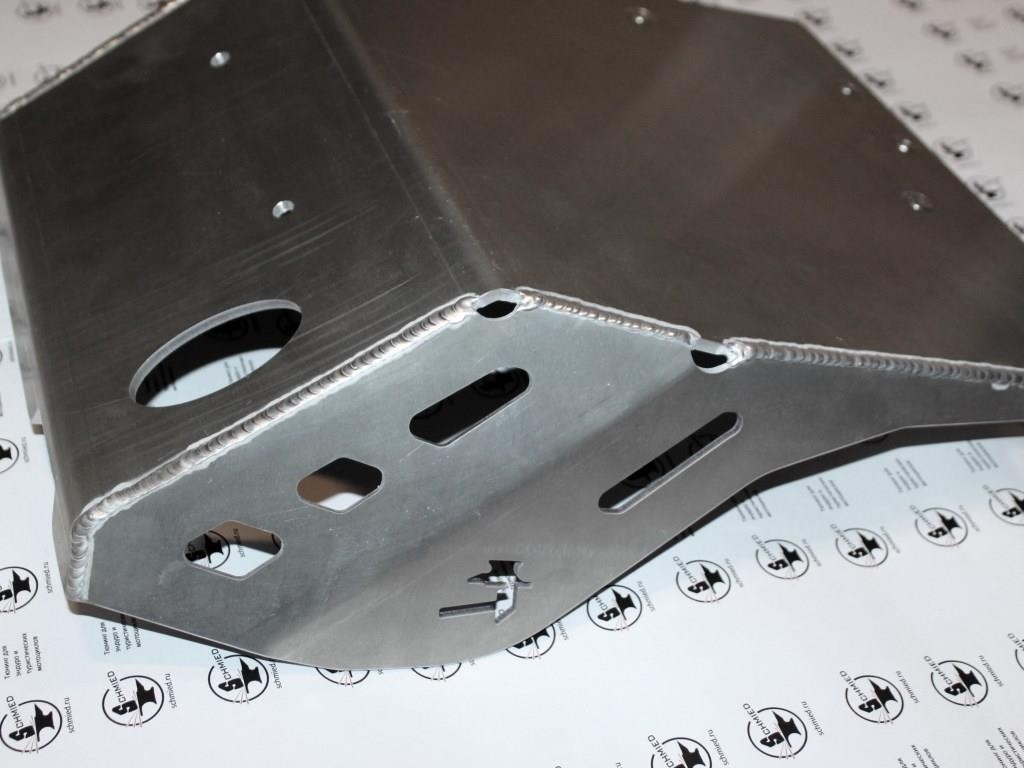 Защита картера двигателя изготовлена из прочного алюминиевого сплава.
