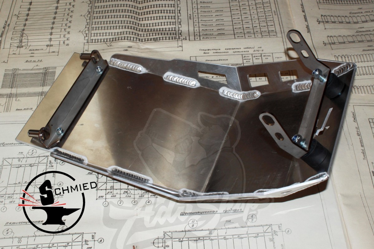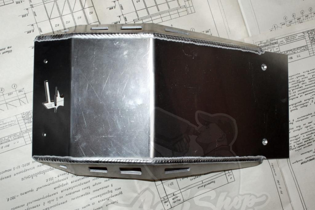 Защита выполнена из алюминия толщиной 4 мм. Аргоновая сварка.