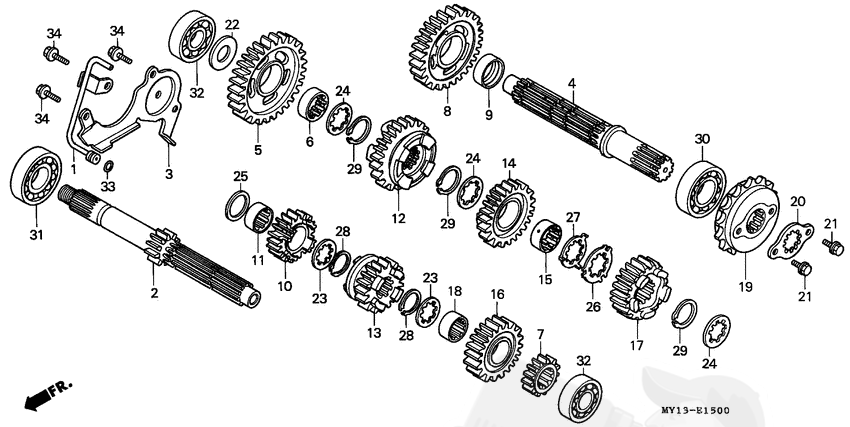 HONDA вторичный вал КПП XRV750 ( 23220MAY000 снят с производства )